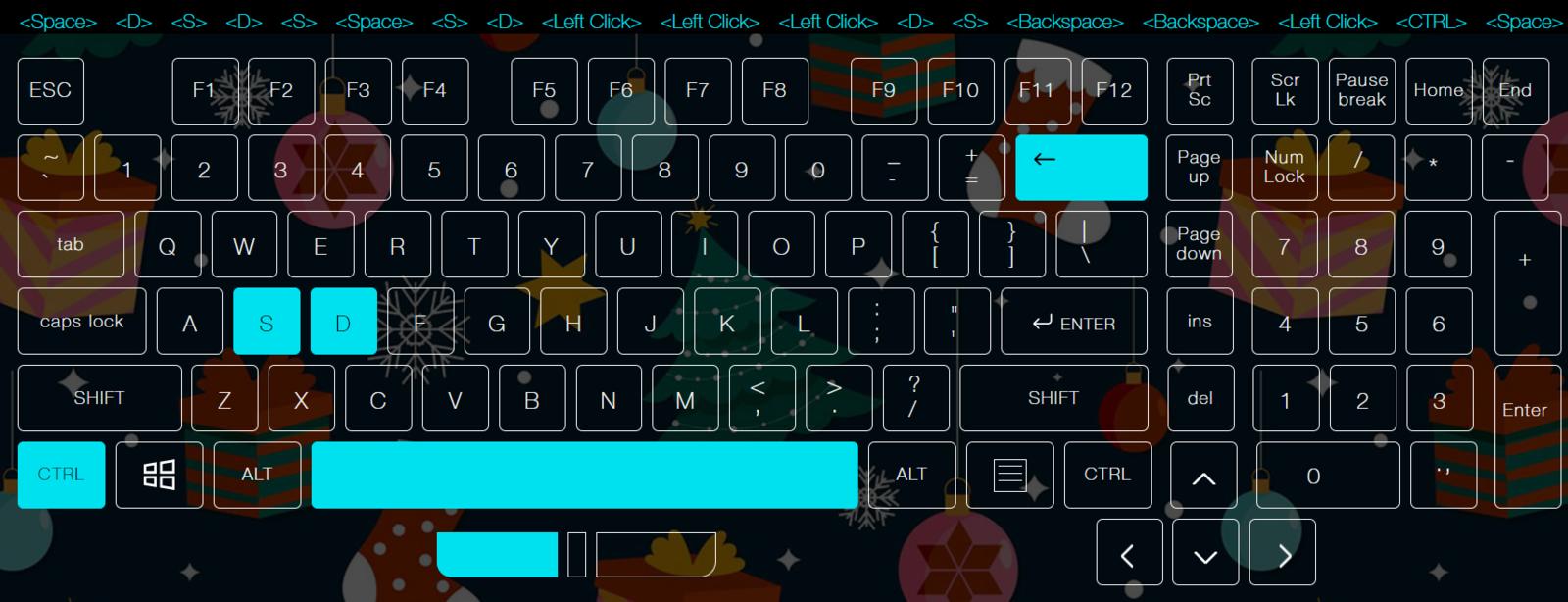 На скриншоте отображено какие клавиши задействовались при условии того что нажимал я только S D и Space в хаотичном порядке