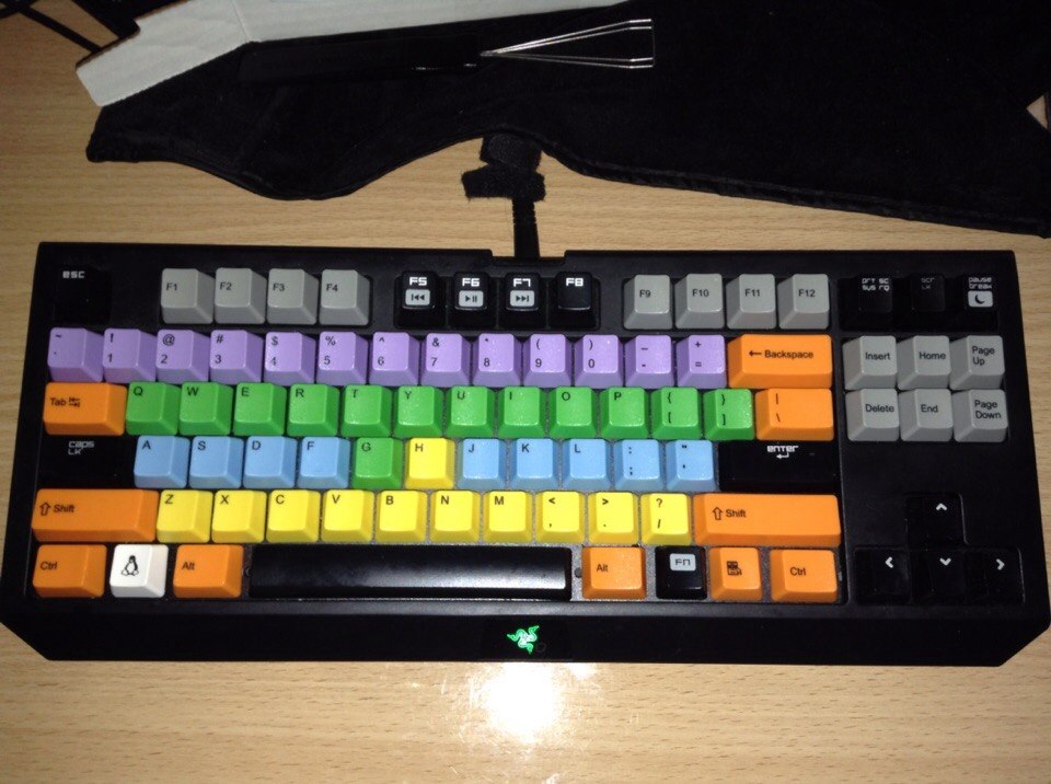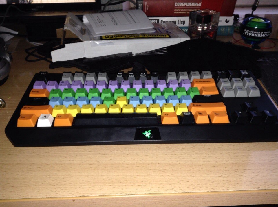 Как вы, возможно, знаете, при заказе можно самостоятельно выбрать цвет любой клавиши. Я не стал сильно мудрствовать (см. фото)