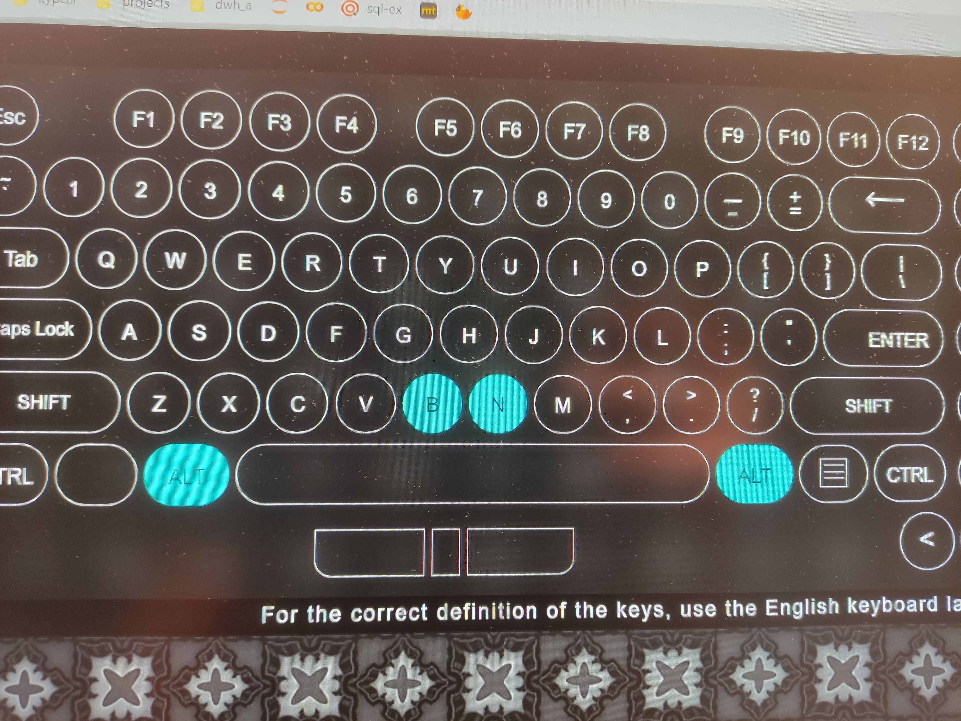 При подключении клавиатуры к компьютеру с открытым тестером клавиатуры получаю нажатые кнопки B,N и Alt (левый, правый или оба не ясно)