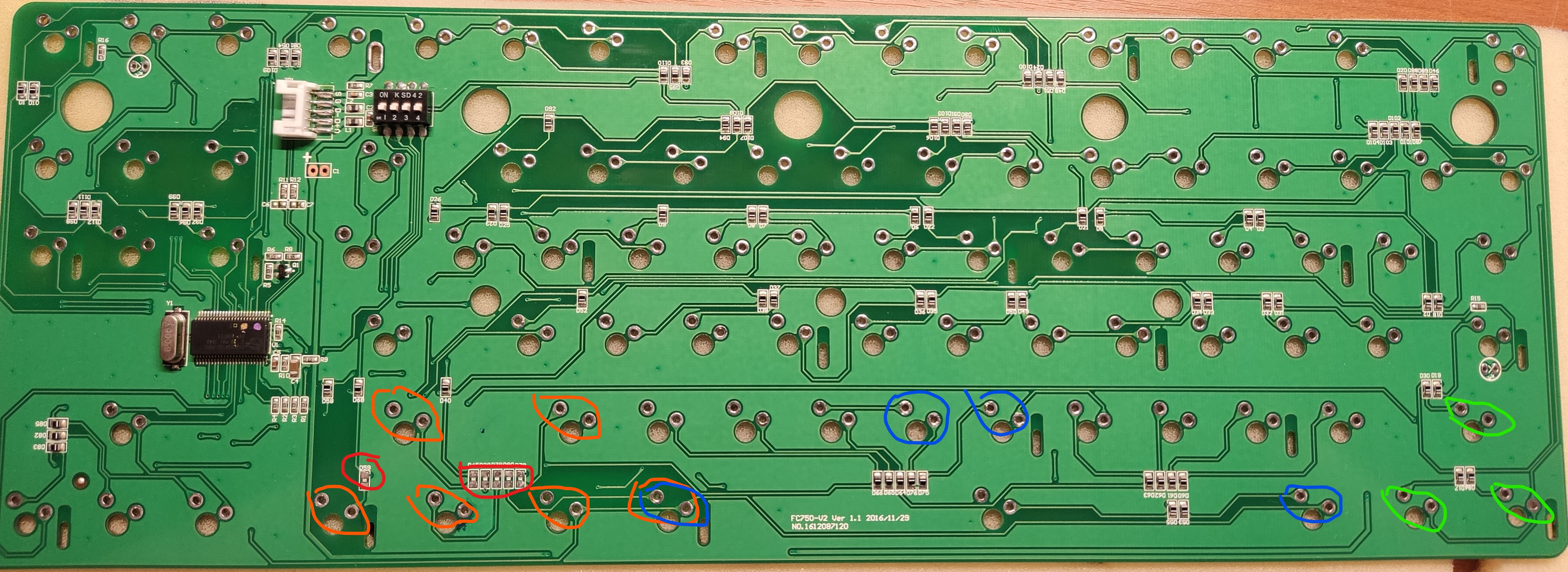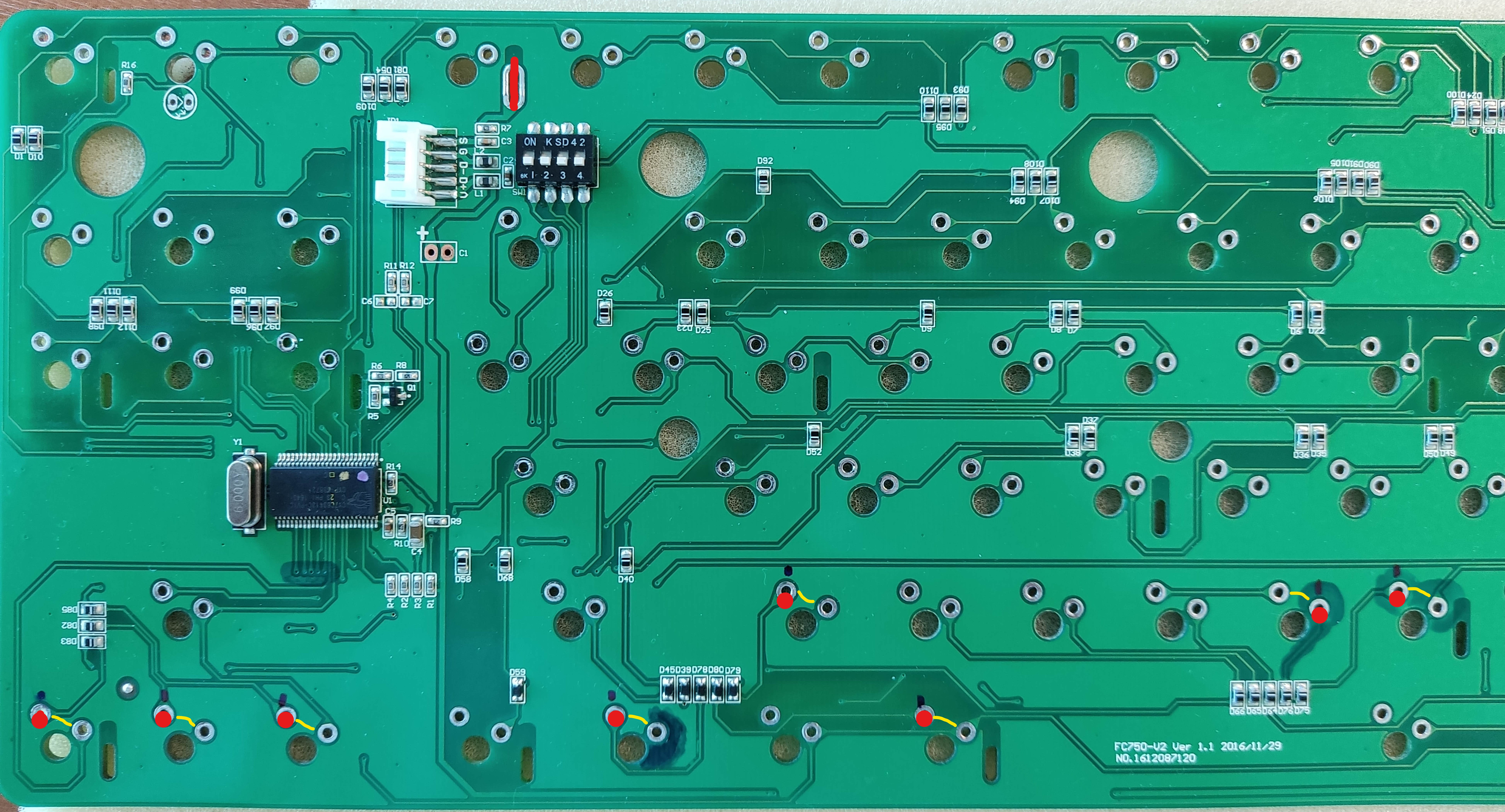 Попал мне в руки Leopold 750 (pcb FC750-V2 Ver. 1.1 2016) после заливки колой и нерабочим сектором