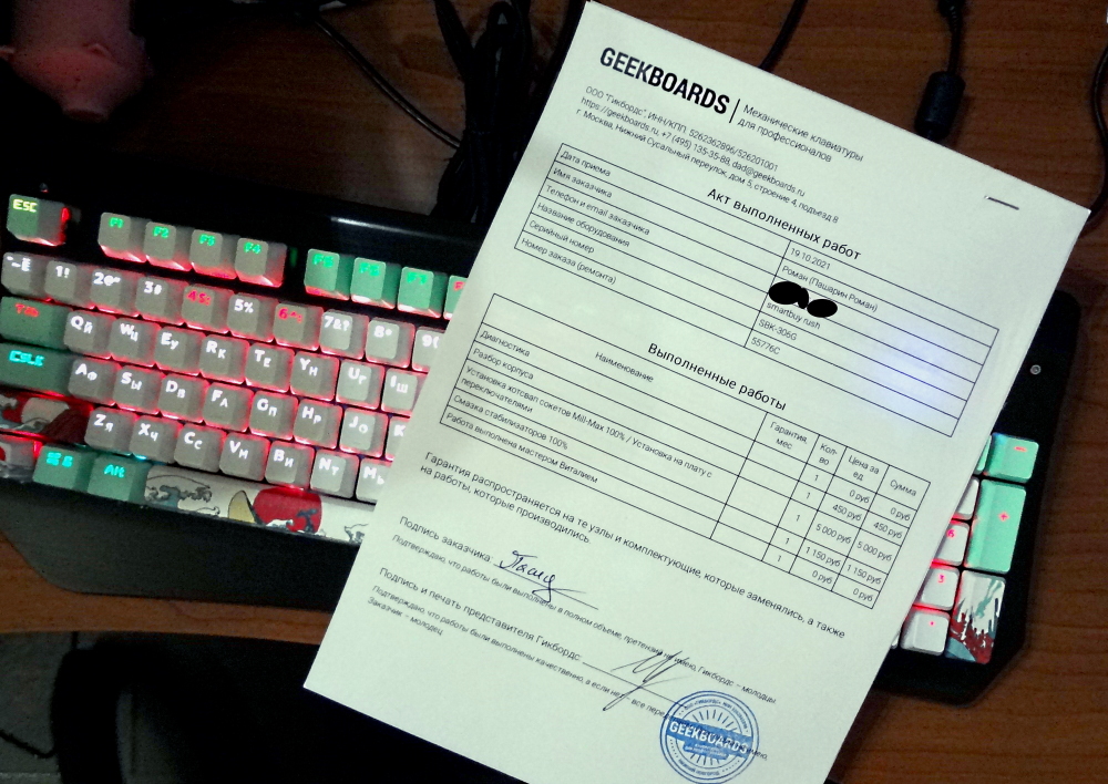 Я благодарю магазин-мастерскую за ремонт клавиатуры "SmartBuy Rush SBK-306G-K" - я написал об этом рассказик, в котором можно прочитать подробности - https://whale-roma.livejournal.com/275682.html . Я очень доволен Вашей работой.