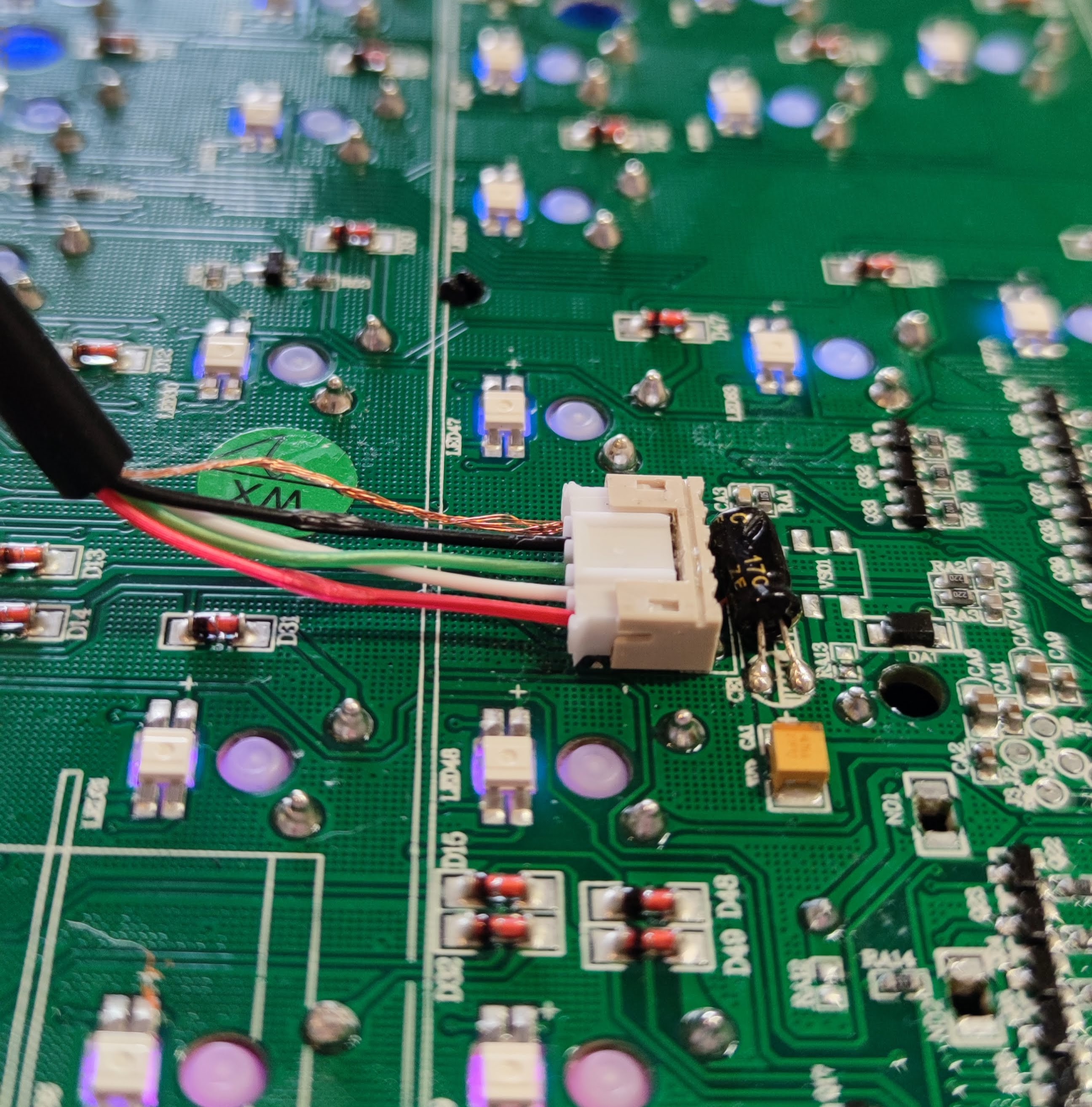вышло колхозно конечно - один из 5 проводов без изоляции хз почему - но работает