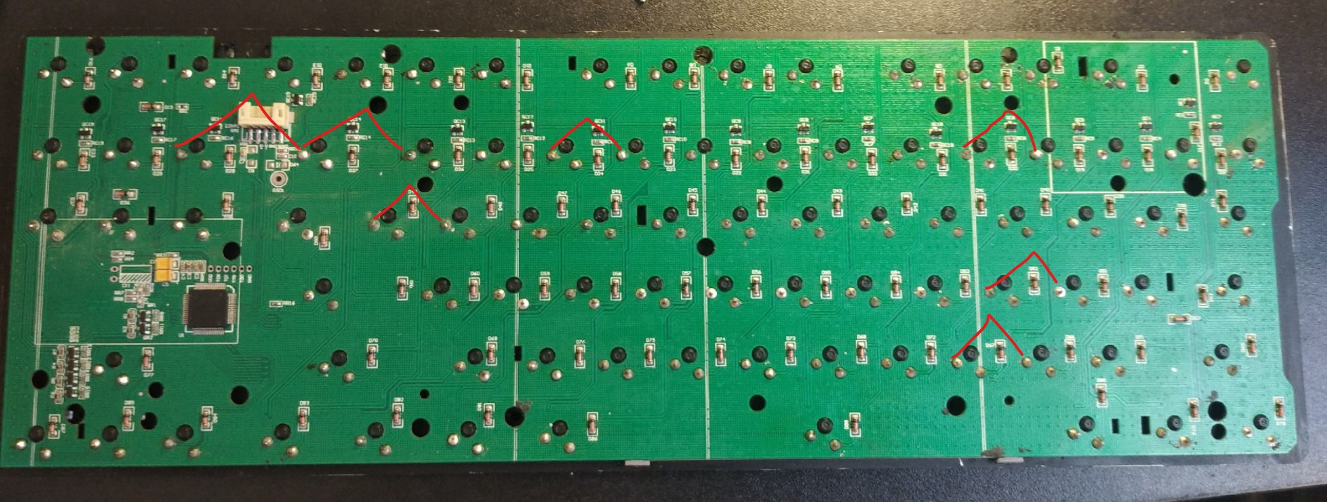 Салют. Клавиатура DEXP Blazing, но я уже довольно давно работаю над её переделкой, так вот, с али пришли белые Gateron. Должны встать заместо стоковых синих Outemu. Однако, после пайки, выяснилось что не работают клавиши: 3, 0, Backspace, S, D, X, Alt (оба), Win, Пробел, оба Ctrl, оба шифта, стрелка вниз, стрелка вправо (вообщем весь нижний ряд, за исключением левой стрелки, блок Num Pad на клаве отсутствует (TKL)). Прозвонил все свитчи - рабочие, дело не в них. Есть идеи, что это может быть и как можно это исправить? Подозреваю, что где навернулась контактная дорожка, но глазами если смотреть, нигде никаких неточностей замечено не было. Спасибо