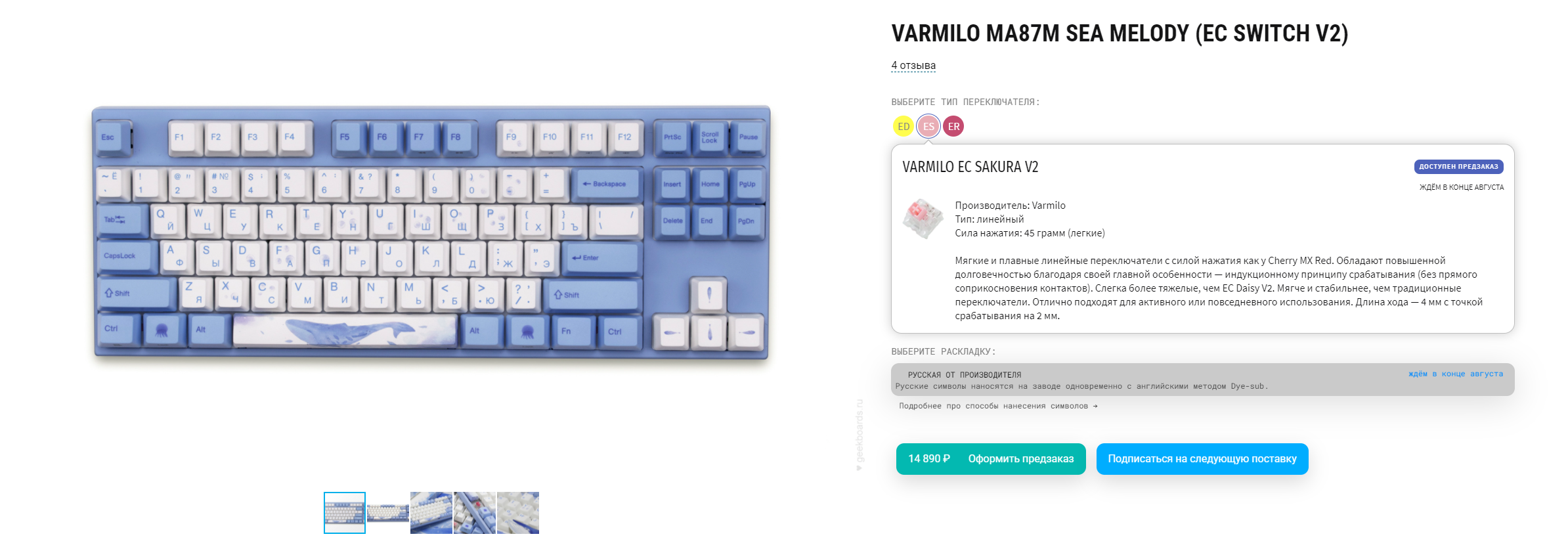 Здравствуйте, перед учёбой хотел купить Varmilo MA87M Sea Melody (EC Switch V2) а ее нету. Когда будет поставка?