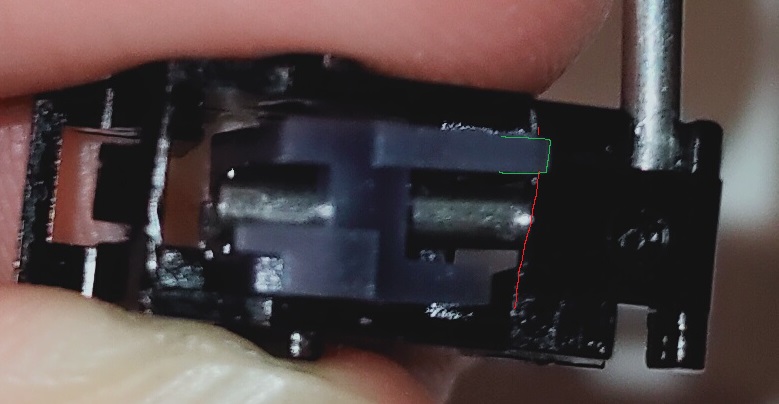 Оказалось, что в нажатом положении эта ножка у стема встает так, что жестко цепляется за край стаба, втф. И так со всеми стабами, хоть и щелкали при печати только два. Толи брак, то ли фича, поменял на нормальные ГМК.