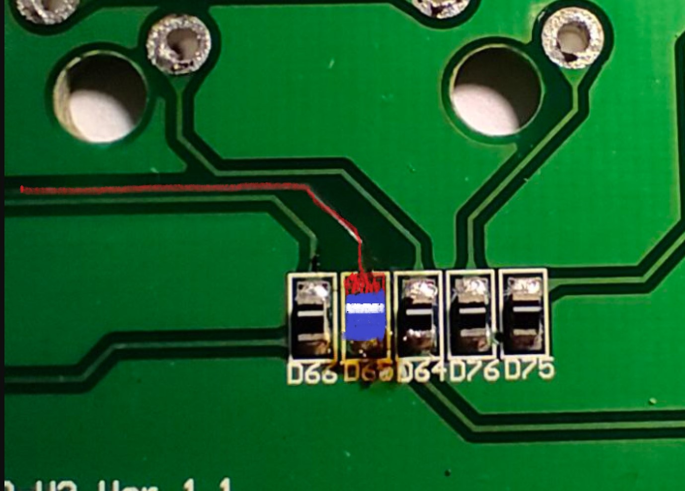 Изначально планировали сделать перемычку в виде обычного многожильного омеднённого кабеля до контактной "ножки" диода. К сожалению, ноги там не оказалось. Посему видится замена диода на похожий.