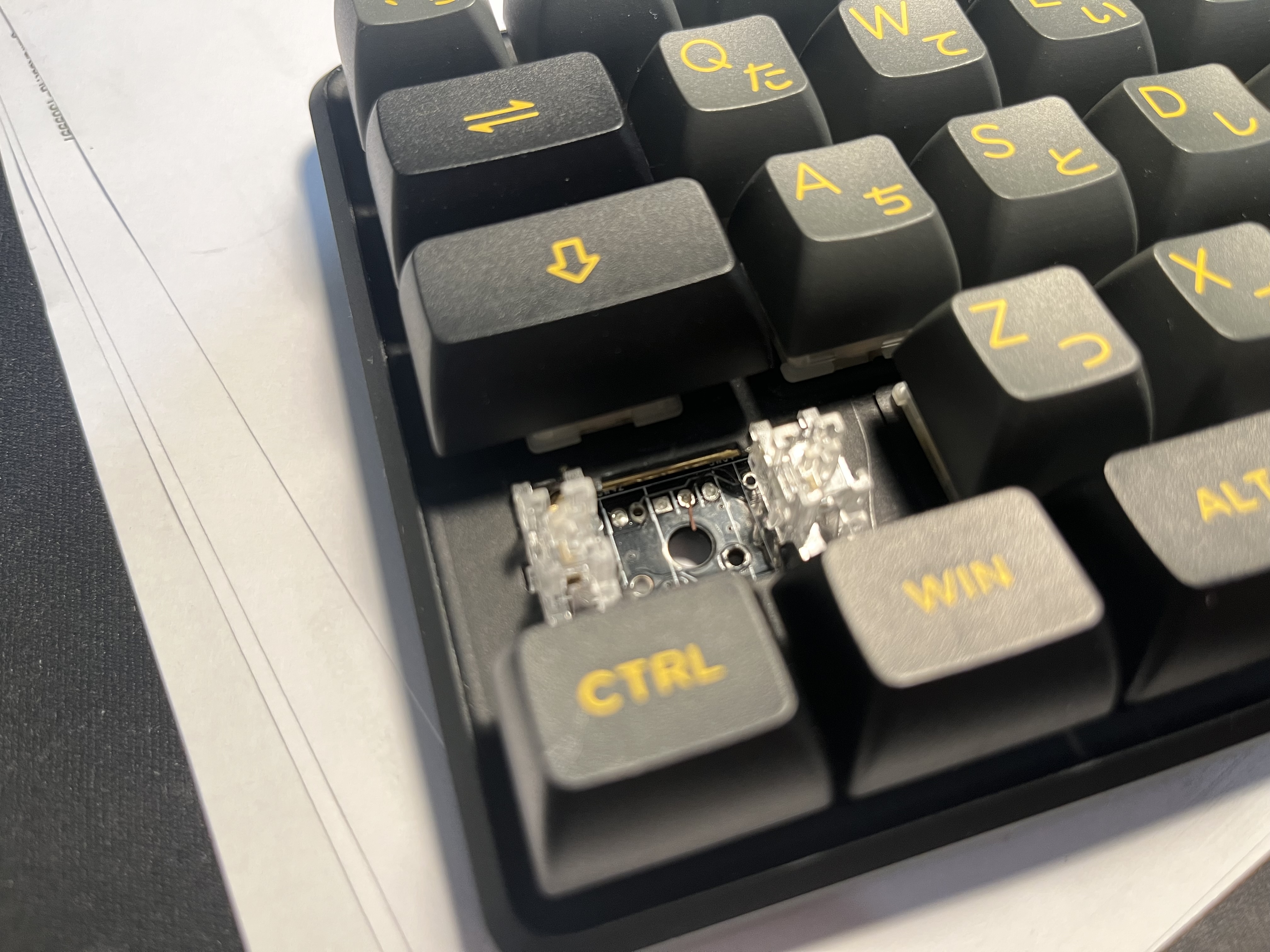 Всё началось с того, что я регил переделать свою первую механику, HyperX Alloy Origin 2 (60%). Загвоздка заключалась в том, что клава не только не хот-свап, но и не южный диод. Ну я попробовал перепаять свитч - перепаял, вместе со светодиодом (да, я извращенец), всё получилось - свитч работал, символ отображался.
